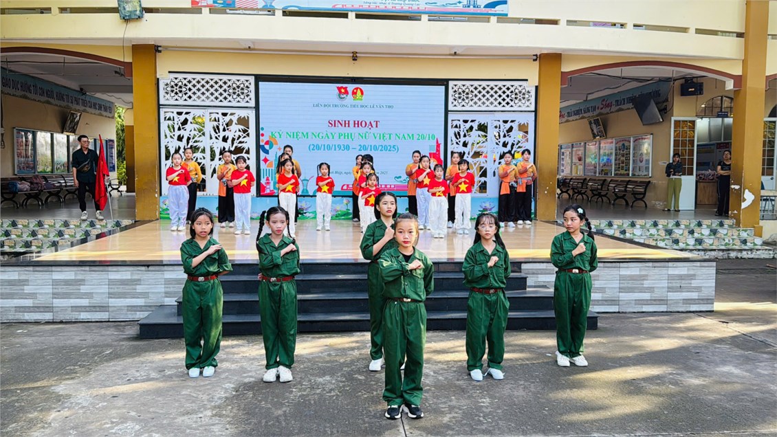 Sáng thứ Hai, ngày 20-10-2025, trong không khí trang nghiêm của buổi chào cờ đầu tuần, trường Tiểu học Lê Văn Thọ, phường Tân Thới Hiệp, đã tổ chức buổi sinh hoạt chuyên đề với chủ đề "Tìm hiểu Ngày Phụ nữ Việt Nam 20-10".